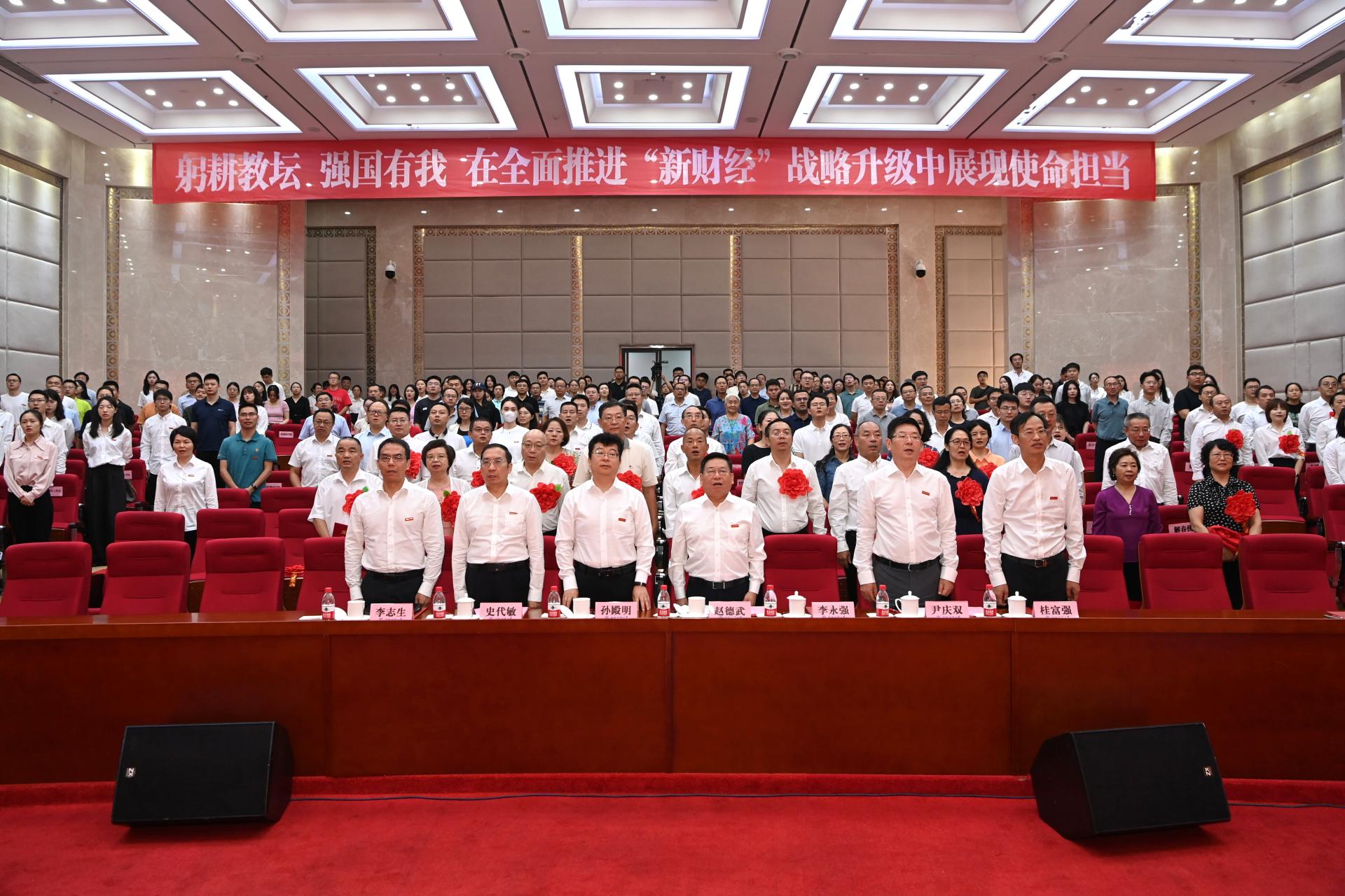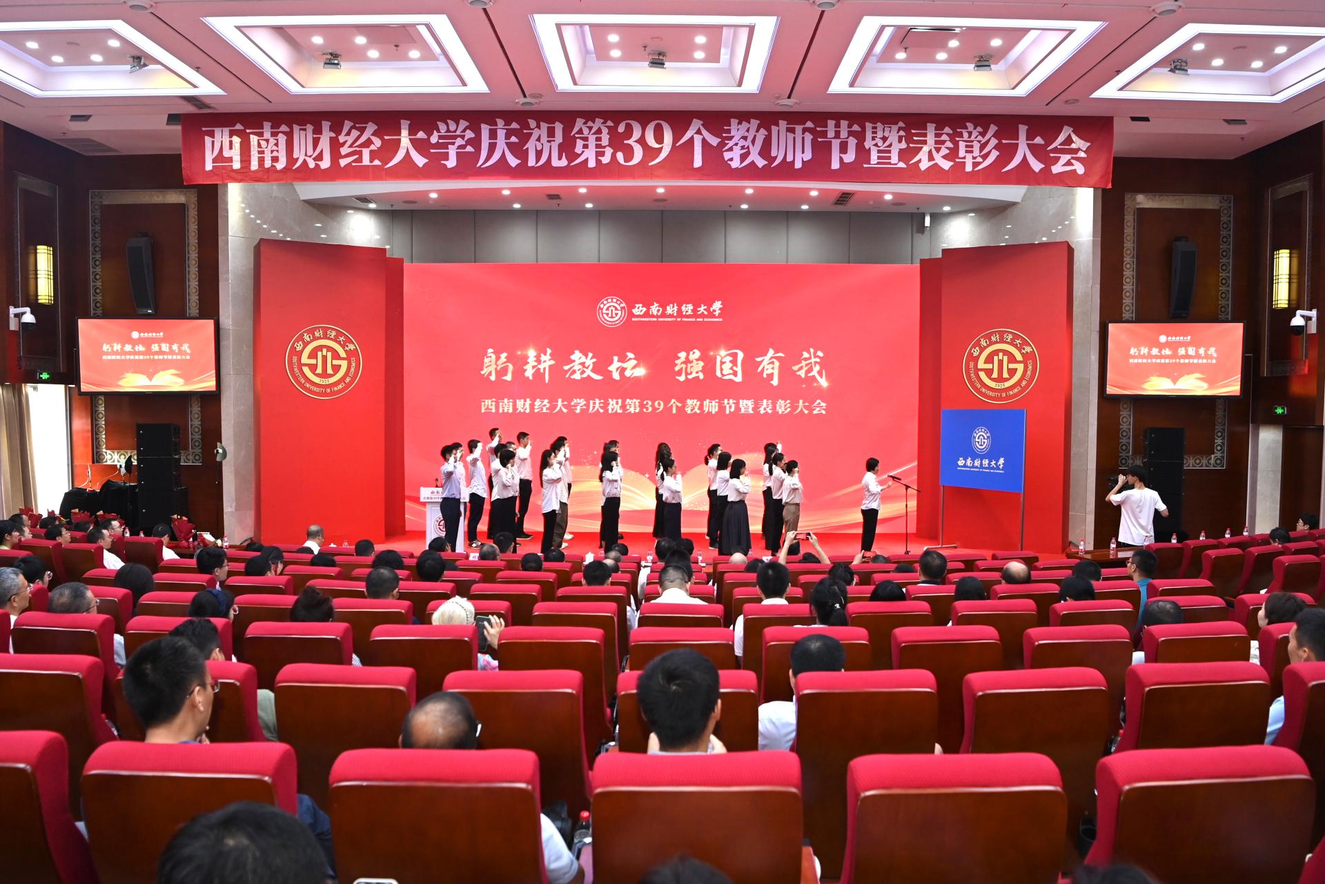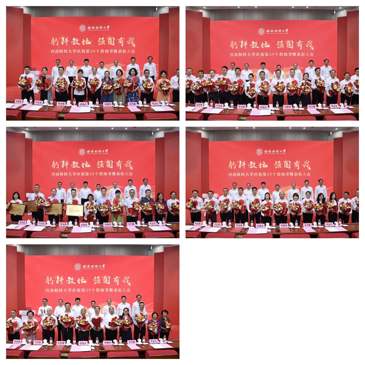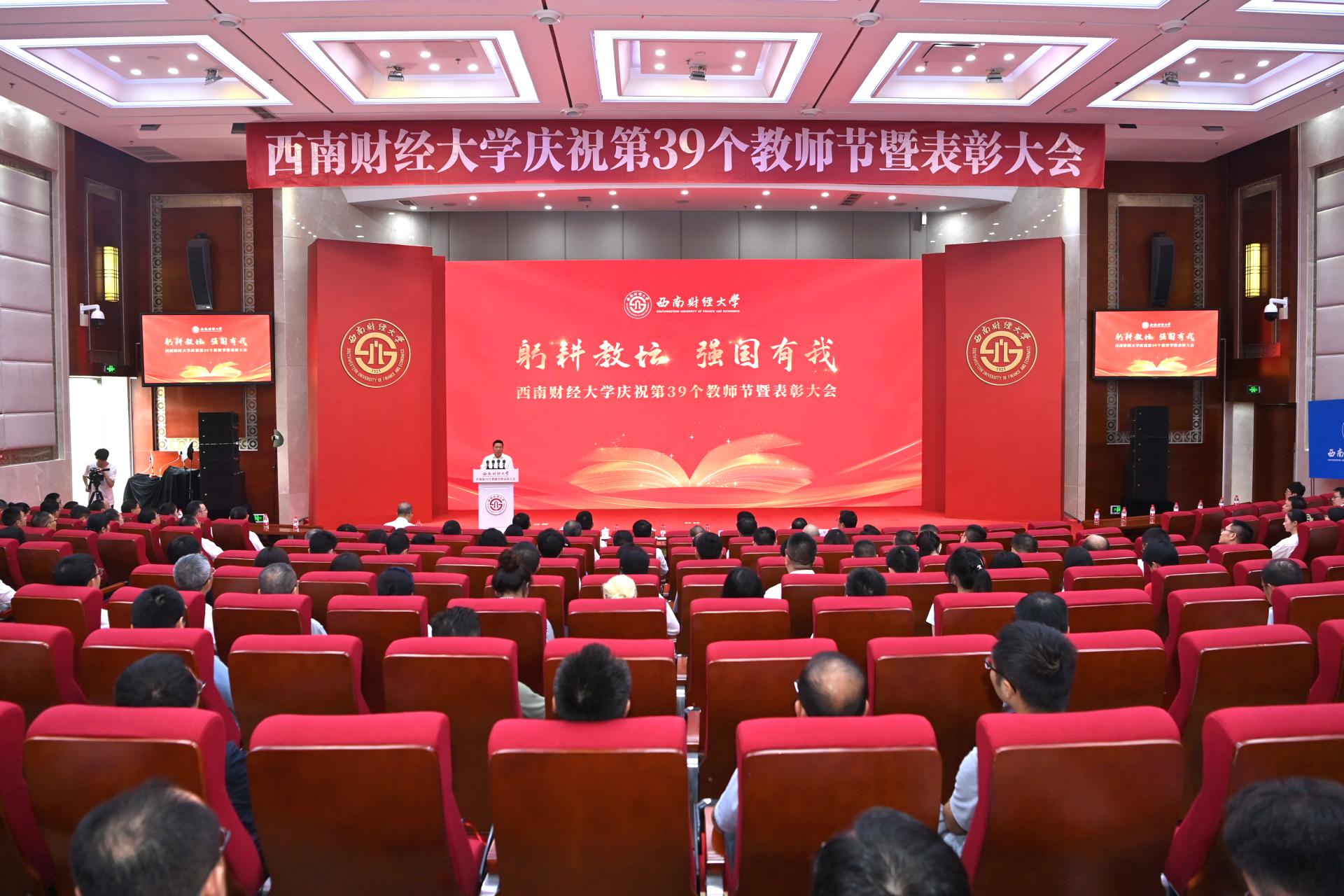立德树人育桃李,躬耕教坛担使命。9月10日下午,西南财经大学在弘远楼105会议室隆重举行庆祝第39个教师节暨表彰大会。党委书记赵德武,党委副书记、校长李永强,党委副书记、纪委书记孙殿明,党委常委、副校长尹庆双、史代敏、桂富强、李志生,荣休教师和从教30年教职工代表,获奖集体和个人代表,职能教辅部门、学院(研究院)代表,统战成员代表,外籍、港澳台教师代表,离退休教职工及新入职教职工代表参加大会。李永强主持大会。