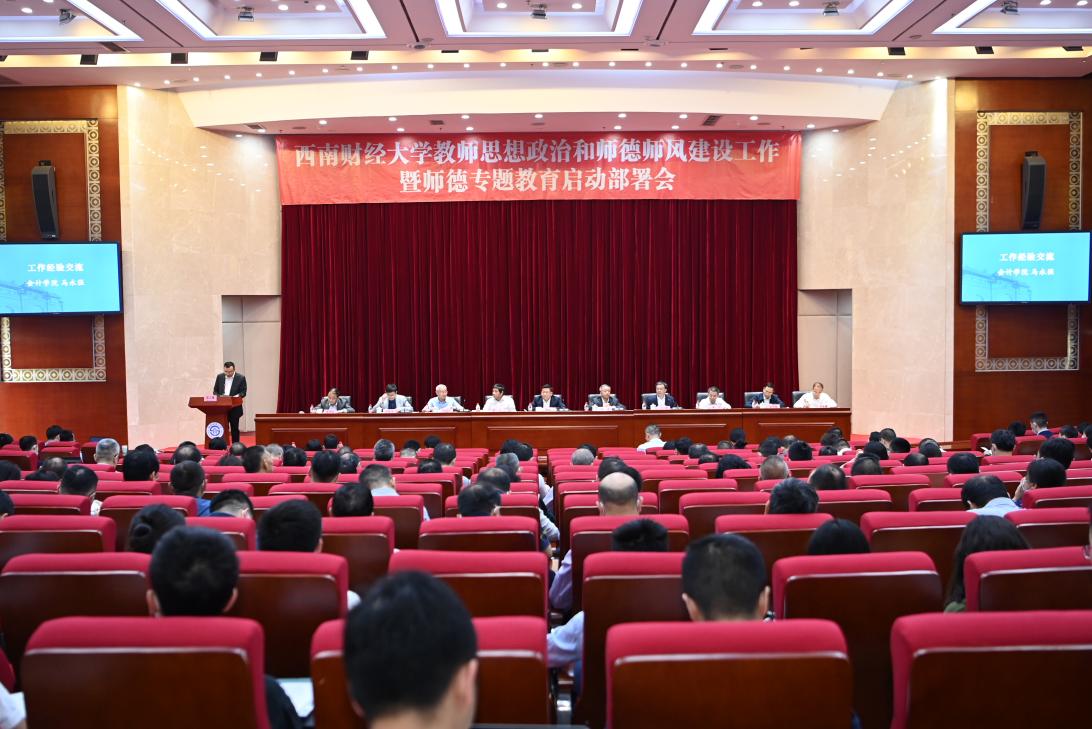 5月25日,学校在柳林校区弘远楼105会议室召开教师思想政治和师德师风建设工作暨师德专题教育启动部署会,深入学习贯彻习近平总书记关于教育的重要论述和教师队伍建设的重要指示精神,系统总结教师思想政治和师德师风建设的成效经验,安排未来一段时期教师思想政治和师德师风建设的重点任务,部署启动师德专题教育。学校党委书记赵德武,党委副书记、校长卓志,党委常委、常务副校长彭龙,党委副书记马骁、曾道荣,党委常委、副校长欧兵、尹庆双、史代敏、张邦富、李永强出席会议。党政职能部门及教辅部门主要负责人,学院(中心)党政主要负责人,学院(中心)专任课教师党支部书记、系所主任、优秀人才、青年教师、海归教师代表等共计260余人参加会议。马骁主持会议。
